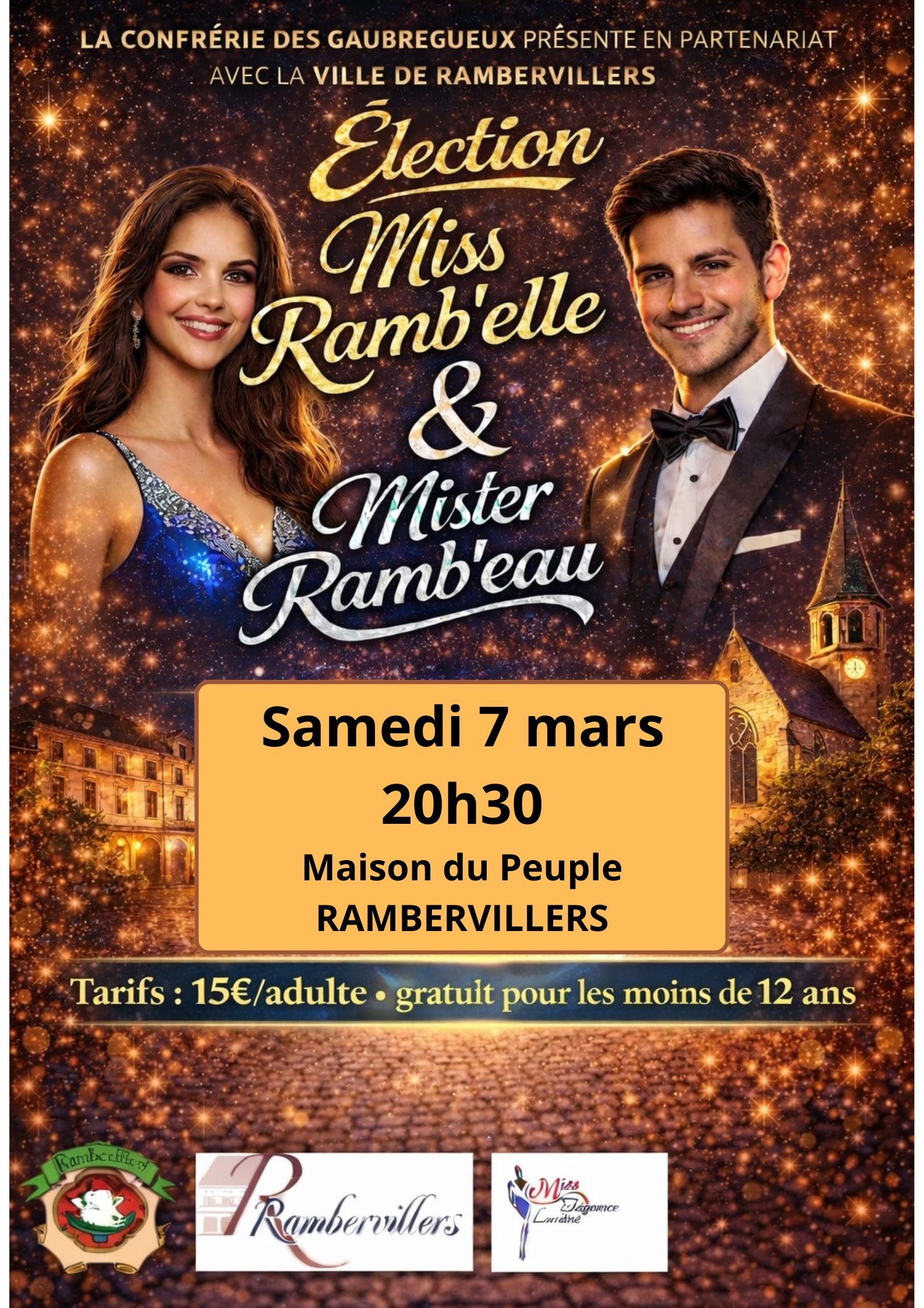 La Confrérie des Gaubregueux Gousteurs de Testes de Veau de Rambervillers, présente en partenariat avec la Ville de Rambervillers et des commerçants locaux, l’élection : Miss Ramb’elle & Mister Ramb’eau.