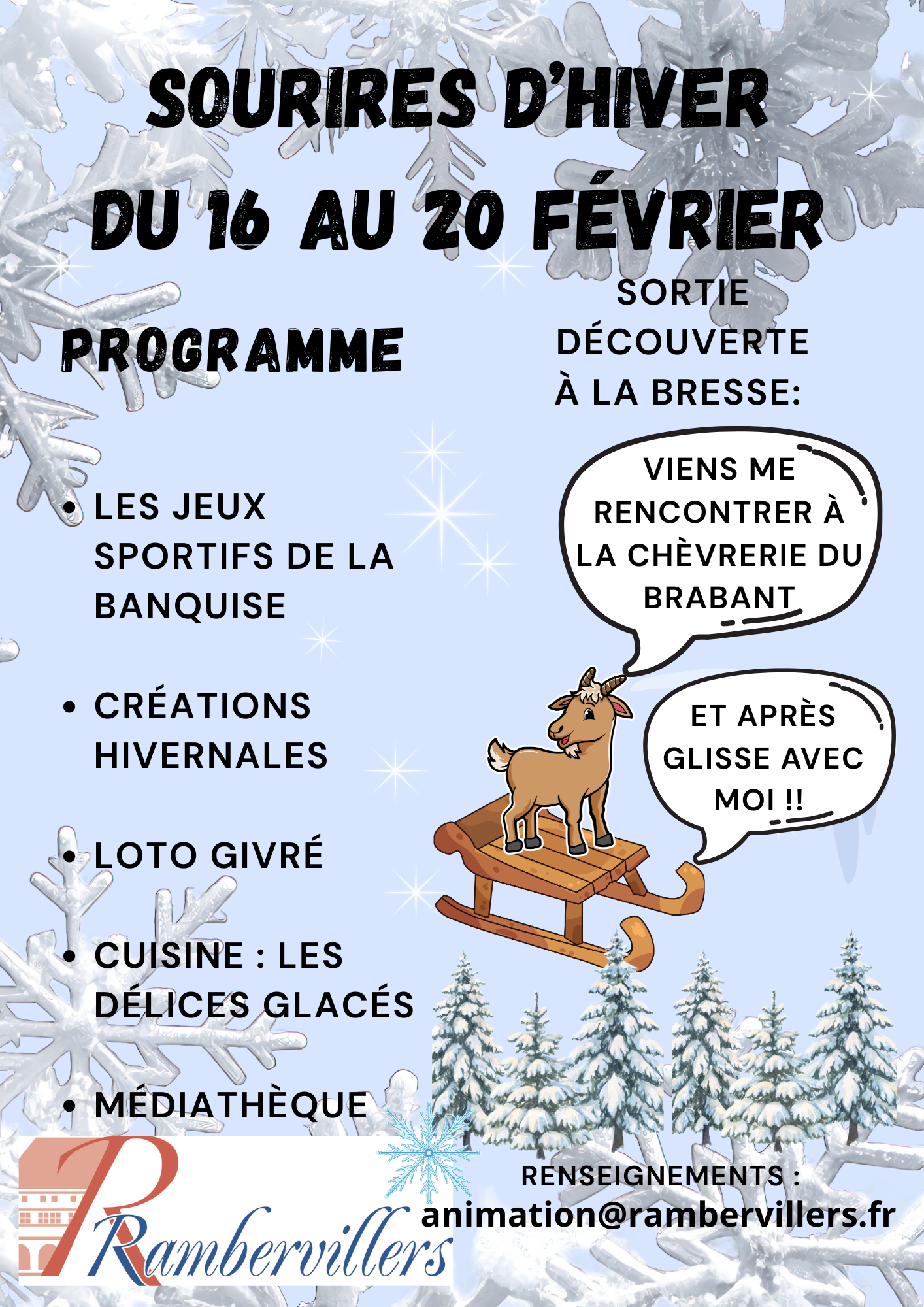 Au programme : jeux sportifs, créations hivernales, loto givré, atelier cuisine, médiathèque et sortie découverte à La Bresse