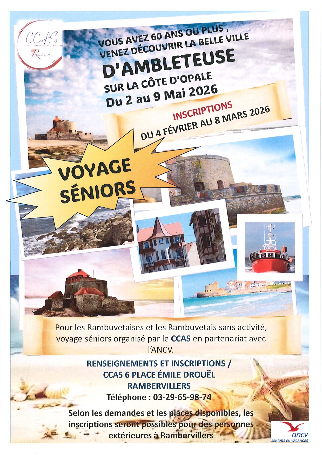 Pour les Rambuvetaise et les Rambuvetais sans activité, le voyage séniors est organisé par le CCAS en partenariat avec l’ANCV.